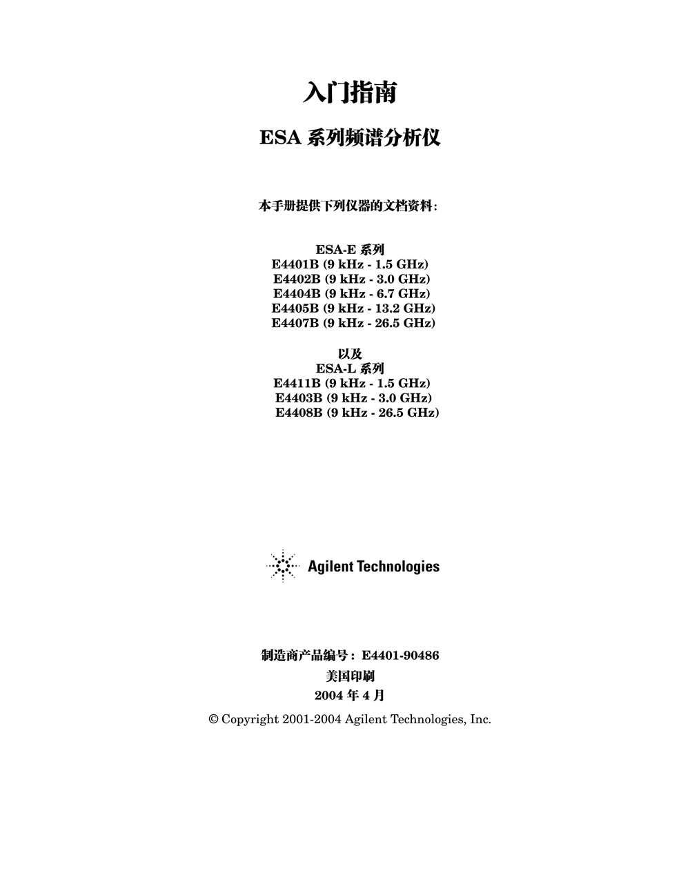 Agilent ESA系列頻譜分析儀中文說(shuō)明書(shū)